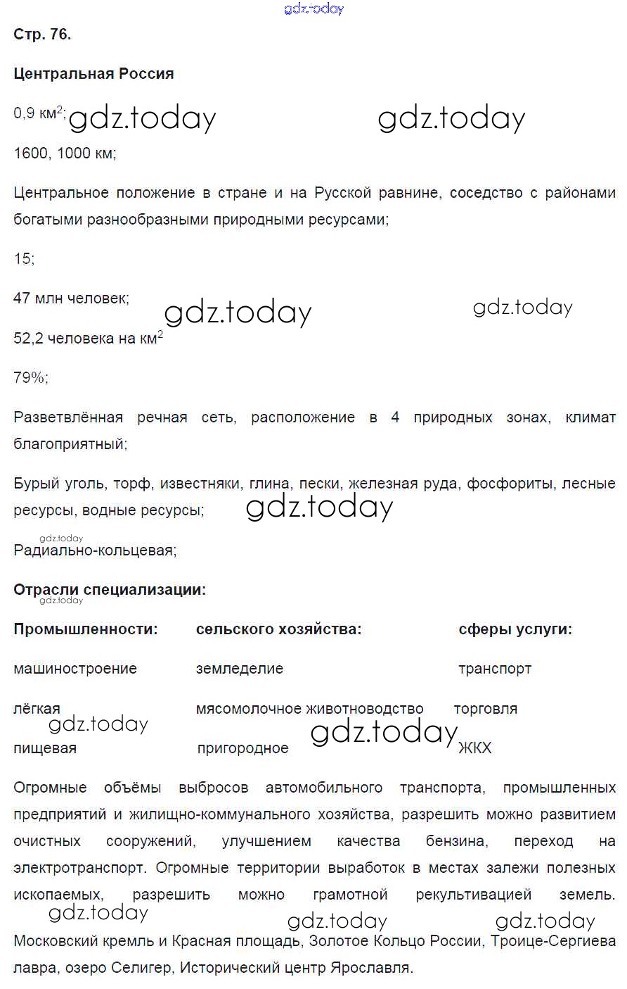 На страницах сайта gdz.today вы найдете учебный и вспомогательный материал, направленный на улучшения знаний школьной программы. ГДЗ - онлайн мир знаний Страницы (решение) 76 Рабочей тетради по Географии для 9 класса Баринова, Дронов Дрофа Вертикаль 2016