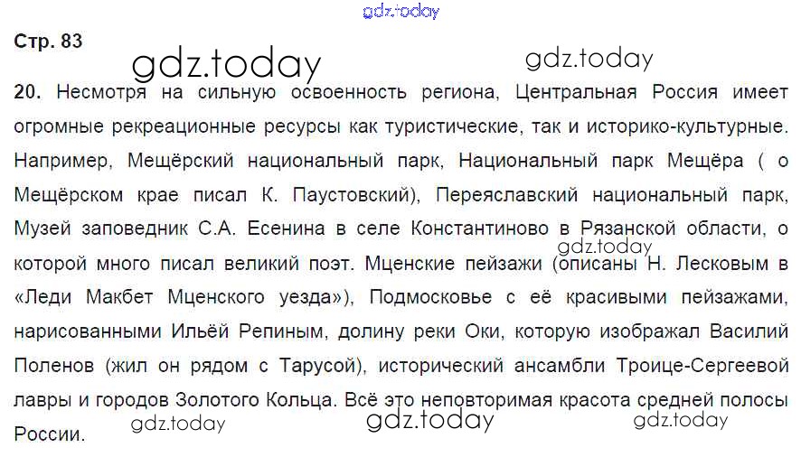 На страницах сайта gdz.today вы найдете учебный и вспомогательный материал, направленный на улучшения знаний школьной программы. ГДЗ - онлайн мир знаний Страницы (решение) 83 Рабочей тетради по Географии для 9 класса Баринова, Дронов Дрофа Вертикаль 2016
