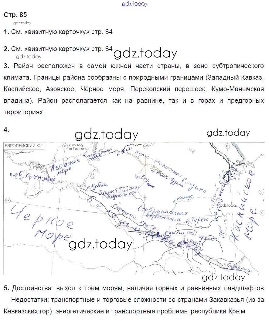 На страницах сайта gdz.today вы найдете учебный и вспомогательный материал, направленный на улучшения знаний школьной программы. ГДЗ - онлайн мир знаний Страницы (решение) 85 Рабочей тетради по Географии для 9 класса Баринова, Дронов Дрофа Вертикаль 2016