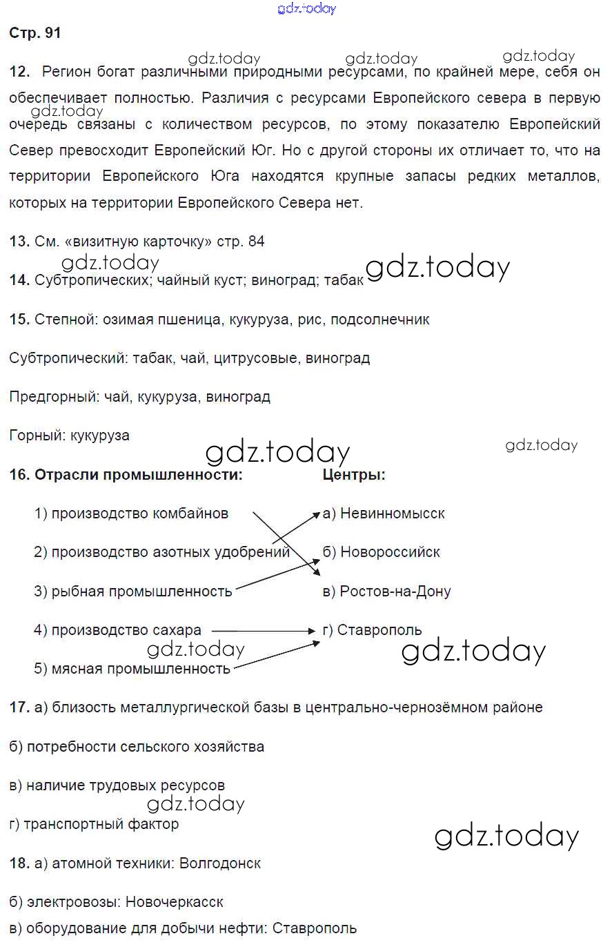 Ответы к Страницы (решение) 91 Рабочей тетради по Географии для 9 класса Баринова, Дронов Дрофа Вертикаль 2016