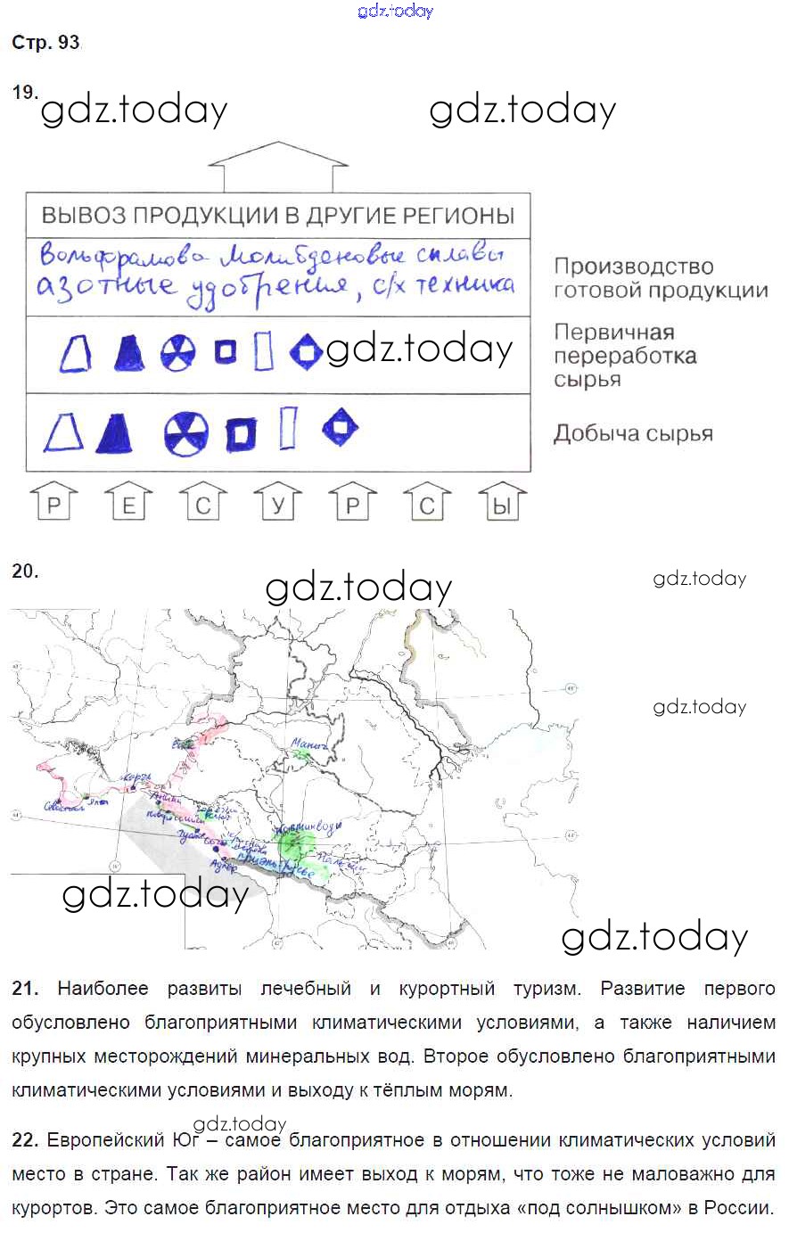 Ответы к Страницы (решение) 93 Рабочей тетради по Географии для 9 класса Баринова, Дронов Дрофа Вертикаль 2016