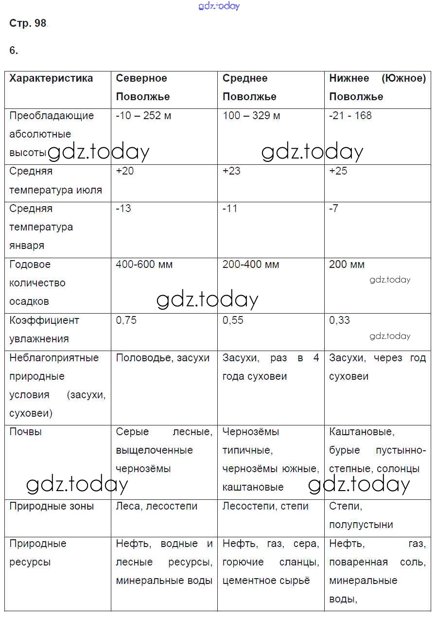 Ответы к Страницы (решение) 98 Рабочей тетради по Географии для 9 класса Баринова, Дронов Дрофа Вертикаль 2016