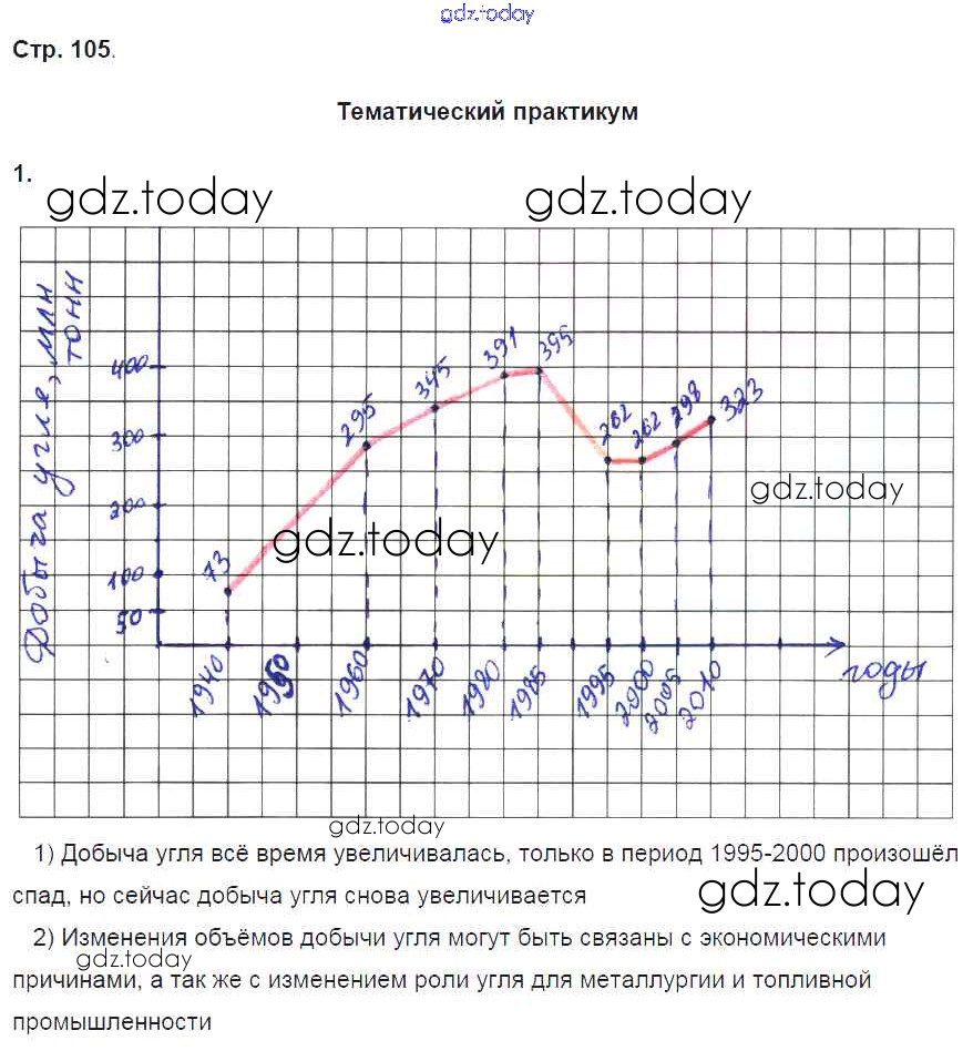 На страницах сайта gdz.today вы найдете учебный и вспомогательный материал, направленный на улучшения знаний школьной программы. ГДЗ - онлайн мир знаний Решение к части 1. Страницы 105 Рабочей тетради по Географии для 9 класса Домогацких Русское слово Инновационная школа 2018