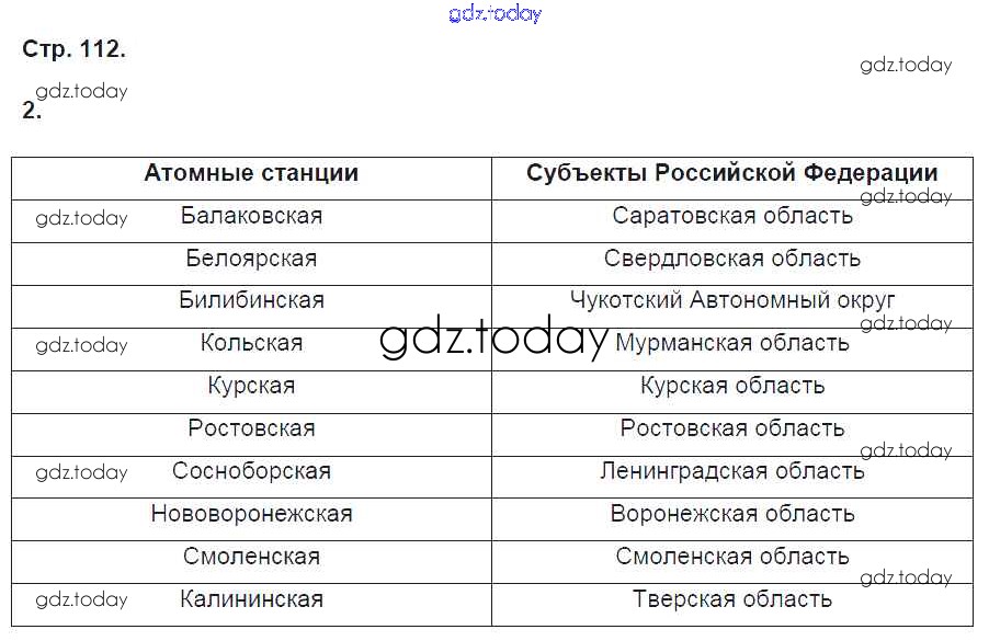 На страницах сайта gdz.today вы найдете учебный и вспомогательный материал, направленный на улучшения знаний школьной программы. ГДЗ - онлайн мир знаний Решение к части 1. Страницы 112 Рабочей тетради по Географии для 9 класса Домогацких Русское слово Инновационная школа 2018
