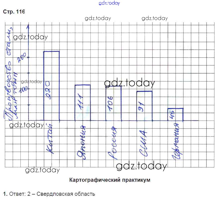 На страницах сайта gdz.today вы найдете учебный и вспомогательный материал, направленный на улучшения знаний школьной программы. ГДЗ - онлайн мир знаний Решение к части 1. Страницы 116 Рабочей тетради по Географии для 9 класса Домогацких Русское слово Инновационная школа 2018