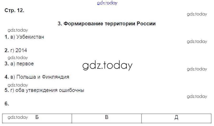 На страницах сайта gdz.today вы найдете учебный и вспомогательный материал, направленный на улучшения знаний школьной программы. ГДЗ - онлайн мир знаний Решение к части 1. Страницы 12 Рабочей тетради по Географии для 9 класса Домогацких Русское слово Инновационная школа 2018