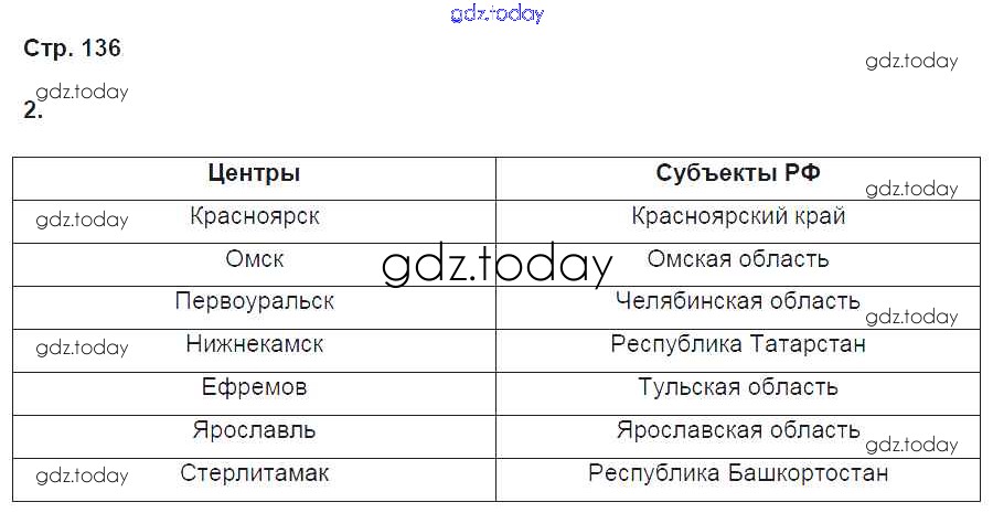 На страницах сайта gdz.today вы найдете учебный и вспомогательный материал, направленный на улучшения знаний школьной программы. ГДЗ - онлайн мир знаний Решение к части 1. Страницы 136 Рабочей тетради по Географии для 9 класса Домогацких Русское слово Инновационная школа 2018
