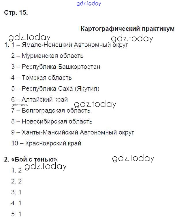 На страницах сайта gdz.today вы найдете учебный и вспомогательный материал, направленный на улучшения знаний школьной программы. ГДЗ - онлайн мир знаний Решение к части 1. Страницы 15 Рабочей тетради по Географии для 9 класса Домогацких Русское слово Инновационная школа 2018