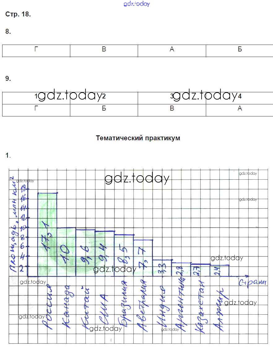 На страницах сайта gdz.today вы найдете учебный и вспомогательный материал, направленный на улучшения знаний школьной программы. ГДЗ - онлайн мир знаний Решение к части 1. Страницы 18 Рабочей тетради по Географии для 9 класса Домогацких Русское слово Инновационная школа 2018