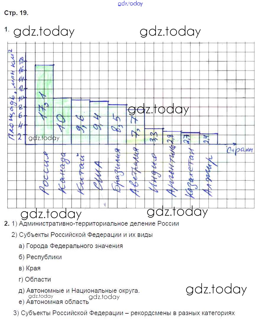 На страницах сайта gdz.today вы найдете учебный и вспомогательный материал, направленный на улучшения знаний школьной программы. ГДЗ - онлайн мир знаний Решение к части 1. Страницы 19 Рабочей тетради по Географии для 9 класса Домогацких Русское слово Инновационная школа 2018
