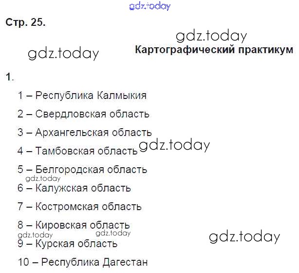 На страницах сайта gdz.today вы найдете учебный и вспомогательный материал, направленный на улучшения знаний школьной программы. ГДЗ - онлайн мир знаний Решение к части 1. Страницы 25 Рабочей тетради по Географии для 9 класса Домогацких Русское слово Инновационная школа 2018