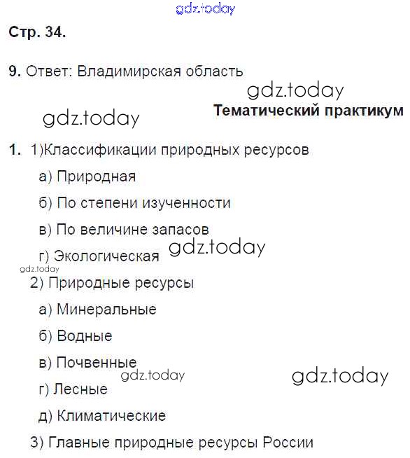 На страницах сайта gdz.today вы найдете учебный и вспомогательный материал, направленный на улучшения знаний школьной программы. ГДЗ - онлайн мир знаний Решение к части 1. Страницы 34 Рабочей тетради по Географии для 9 класса Домогацких Русское слово Инновационная школа 2018