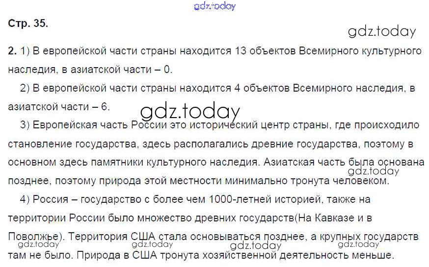 На страницах сайта gdz.today вы найдете учебный и вспомогательный материал, направленный на улучшения знаний школьной программы. ГДЗ - онлайн мир знаний Решение к части 1. Страницы 35 Рабочей тетради по Географии для 9 класса Домогацких Русское слово Инновационная школа 2018