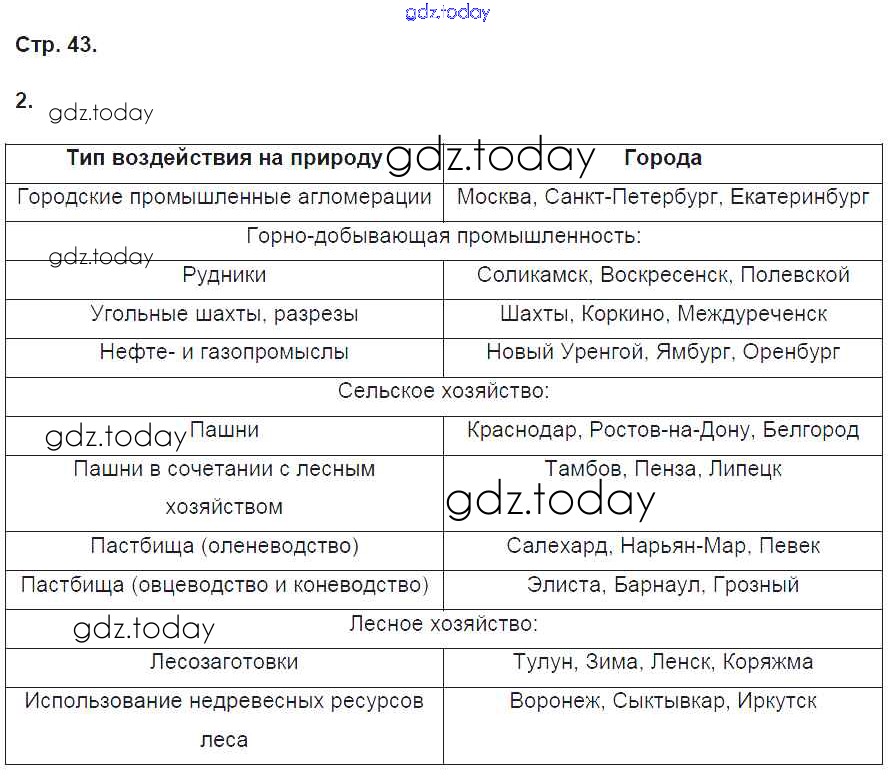 На страницах сайта gdz.today вы найдете учебный и вспомогательный материал, направленный на улучшения знаний школьной программы. ГДЗ - онлайн мир знаний Решение к части 1. Страницы 43 Рабочей тетради по Географии для 9 класса Домогацких Русское слово Инновационная школа 2018