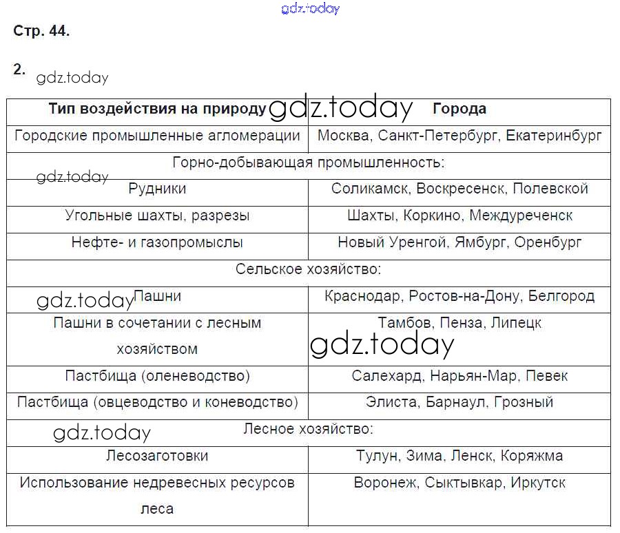 На страницах сайта gdz.today вы найдете учебный и вспомогательный материал, направленный на улучшения знаний школьной программы. ГДЗ - онлайн мир знаний Решение к части 1. Страницы 44 Рабочей тетради по Географии для 9 класса Домогацких Русское слово Инновационная школа 2018