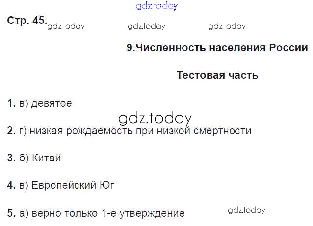 На страницах сайта gdz.today вы найдете учебный и вспомогательный материал, направленный на улучшения знаний школьной программы. ГДЗ - онлайн мир знаний Решение к части 1. Страницы 45 Рабочей тетради по Географии для 9 класса Домогацких Русское слово Инновационная школа 2018
