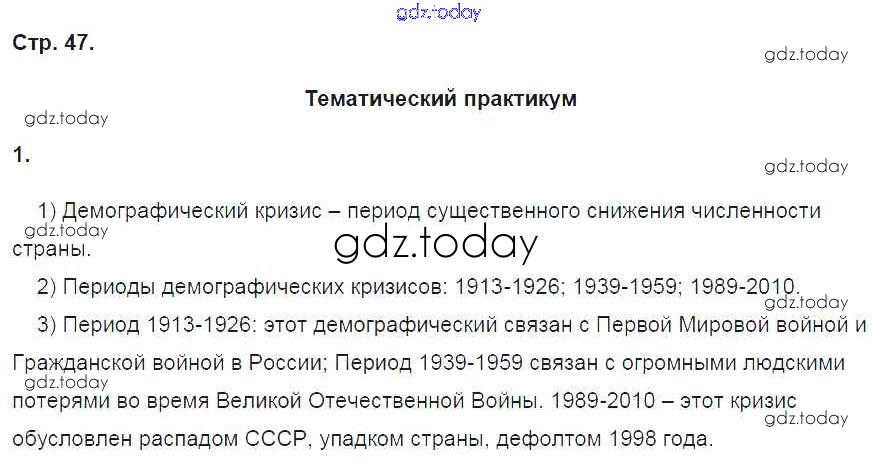 На страницах сайта gdz.today вы найдете учебный и вспомогательный материал, направленный на улучшения знаний школьной программы. ГДЗ - онлайн мир знаний Решение к части 1. Страницы 47 Рабочей тетради по Географии для 9 класса Домогацких Русское слово Инновационная школа 2018