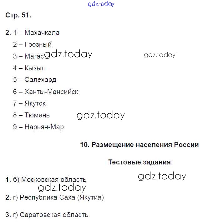На страницах сайта gdz.today вы найдете учебный и вспомогательный материал, направленный на улучшения знаний школьной программы. ГДЗ - онлайн мир знаний Решение к части 1. Страницы 51 Рабочей тетради по Географии для 9 класса Домогацких Русское слово Инновационная школа 2018