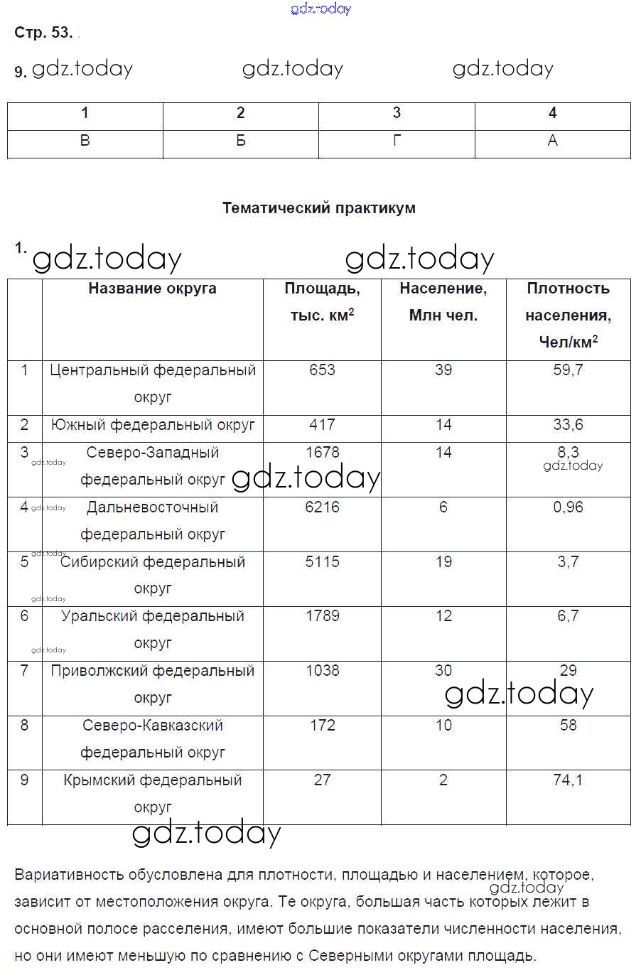 На страницах сайта gdz.today вы найдете учебный и вспомогательный материал, направленный на улучшения знаний школьной программы. ГДЗ - онлайн мир знаний Решение к части 1. Страницы 53 Рабочей тетради по Географии для 9 класса Домогацких Русское слово Инновационная школа 2018