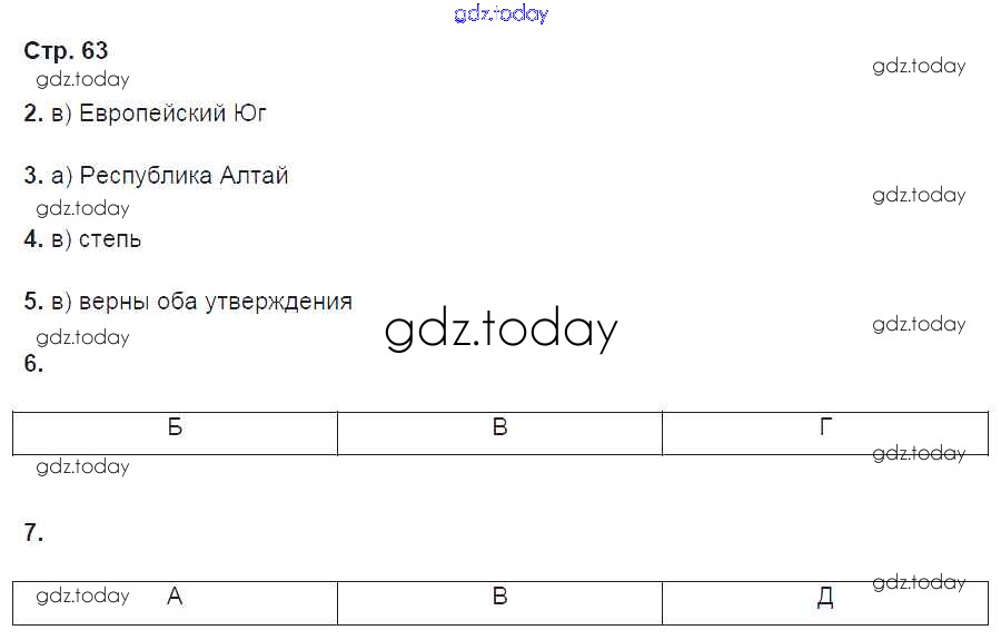 На страницах сайта gdz.today вы найдете учебный и вспомогательный материал, направленный на улучшения знаний школьной программы. ГДЗ - онлайн мир знаний Решение к части 1. Страницы 63 Рабочей тетради по Географии для 9 класса Домогацких Русское слово Инновационная школа 2018