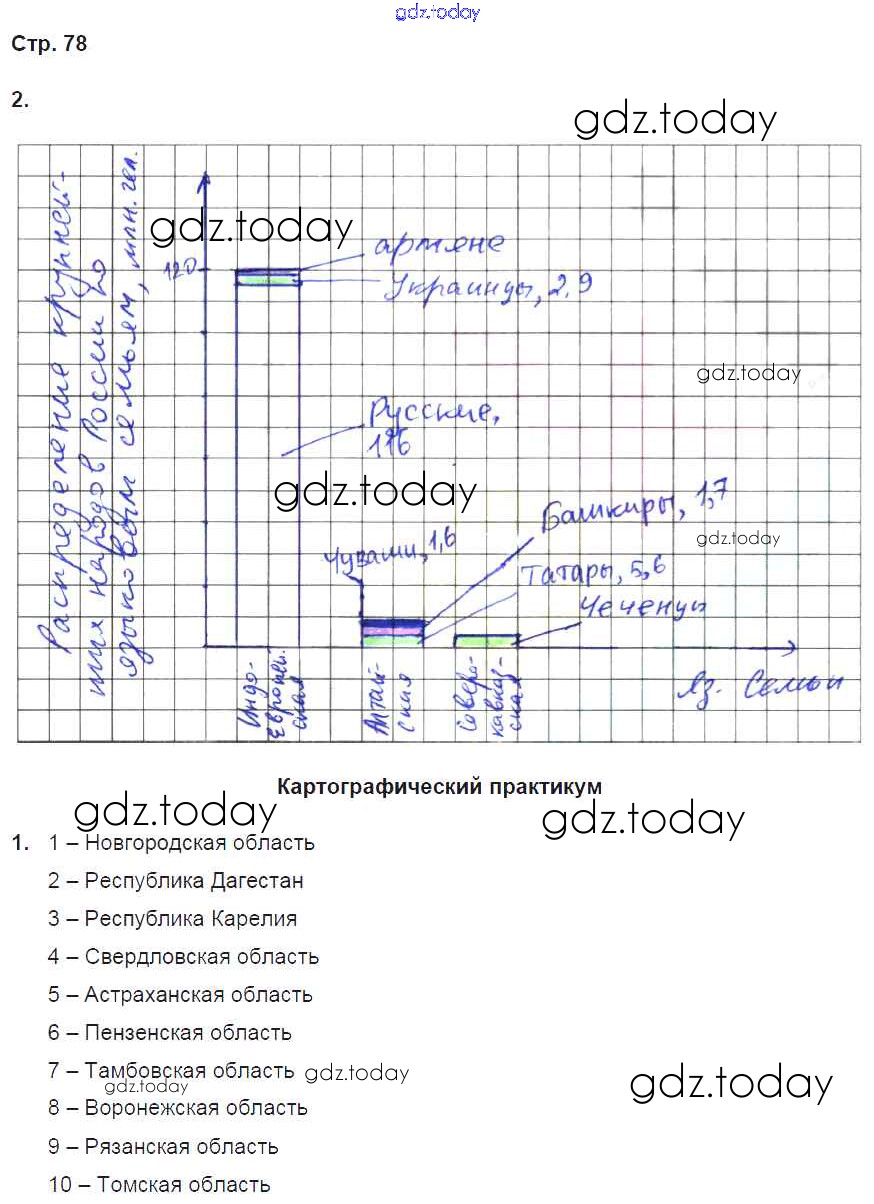 На страницах сайта gdz.today вы найдете учебный и вспомогательный материал, направленный на улучшения знаний школьной программы. ГДЗ - онлайн мир знаний Решение к части 1. Страницы 78 Рабочей тетради по Географии для 9 класса Домогацких Русское слово Инновационная школа 2018
