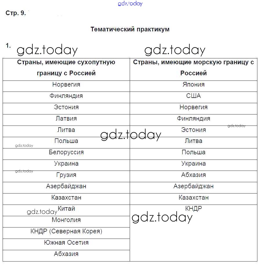 На страницах сайта gdz.today вы найдете учебный и вспомогательный материал, направленный на улучшения знаний школьной программы. ГДЗ - онлайн мир знаний Решение к части 1. Страницы 9 Рабочей тетради по Географии для 9 класса Домогацких Русское слово Инновационная школа 2018