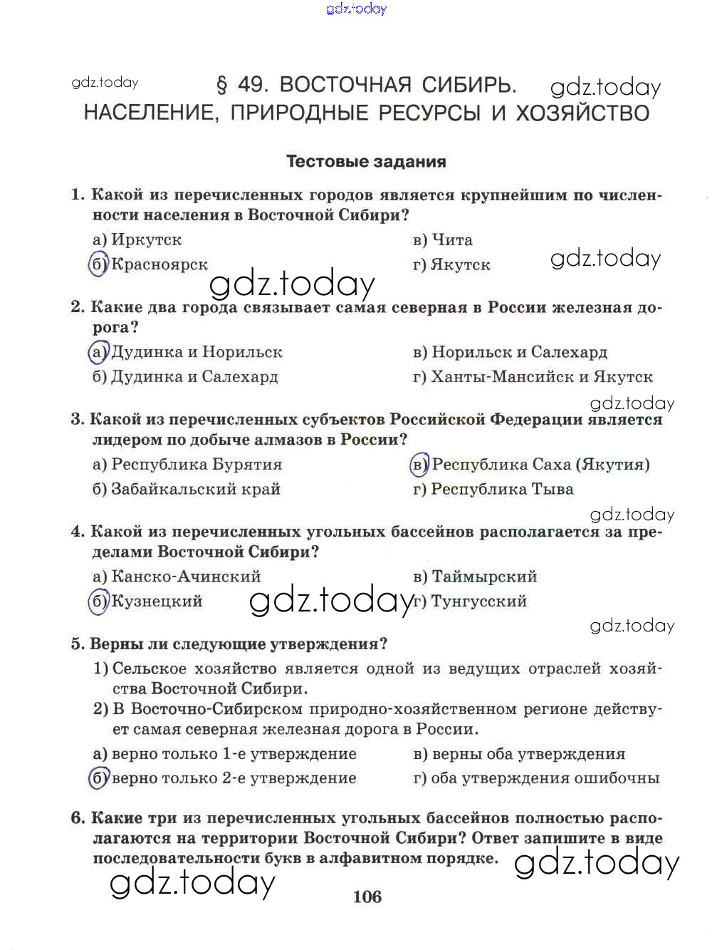 На страницах сайта gdz.today вы найдете учебный и вспомогательный материал, направленный на улучшения знаний школьной программы. ГДЗ - онлайн мир знаний Решение к части 2. Страницы 106 Рабочей тетради по Географии для 9 класса Домогацких Русское слово Инновационная школа 2018