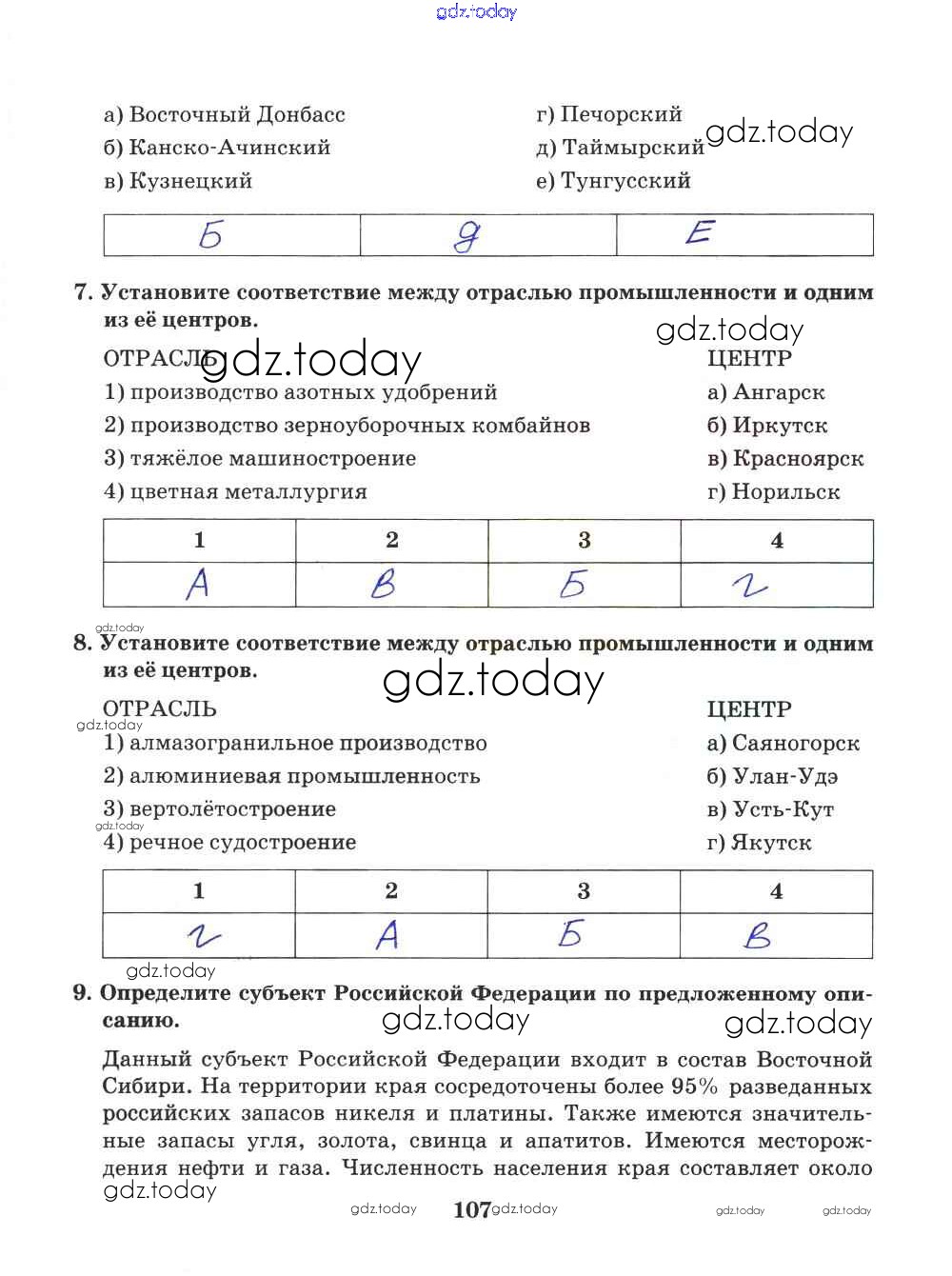 На страницах сайта gdz.today вы найдете учебный и вспомогательный материал, направленный на улучшения знаний школьной программы. ГДЗ - онлайн мир знаний Решение к части 2. Страницы 107 Рабочей тетради по Географии для 9 класса Домогацких Русское слово Инновационная школа 2018