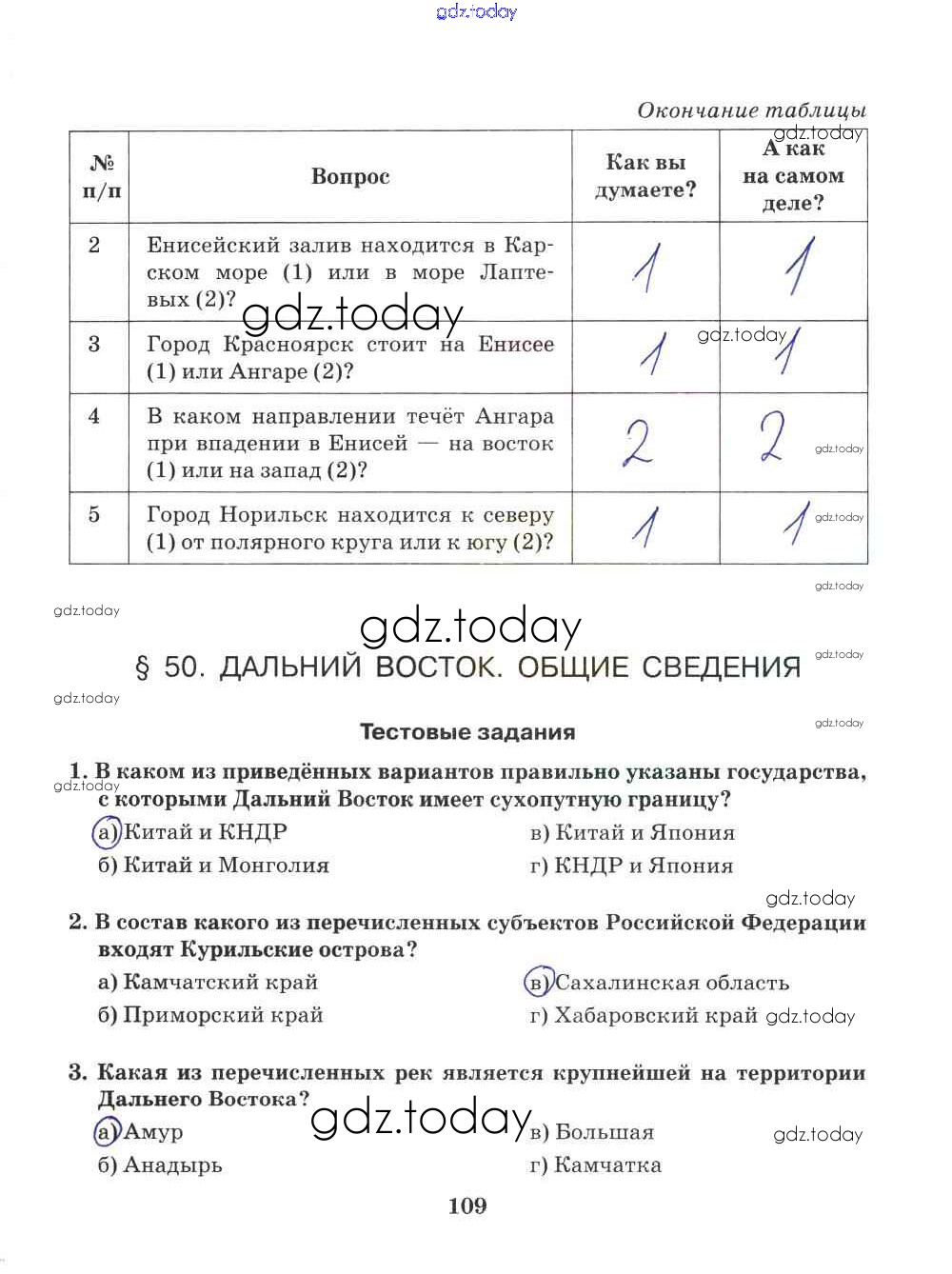 На страницах сайта gdz.today вы найдете учебный и вспомогательный материал, направленный на улучшения знаний школьной программы. ГДЗ - онлайн мир знаний Решение к части 2. Страницы 109 Рабочей тетради по Географии для 9 класса Домогацких Русское слово Инновационная школа 2018