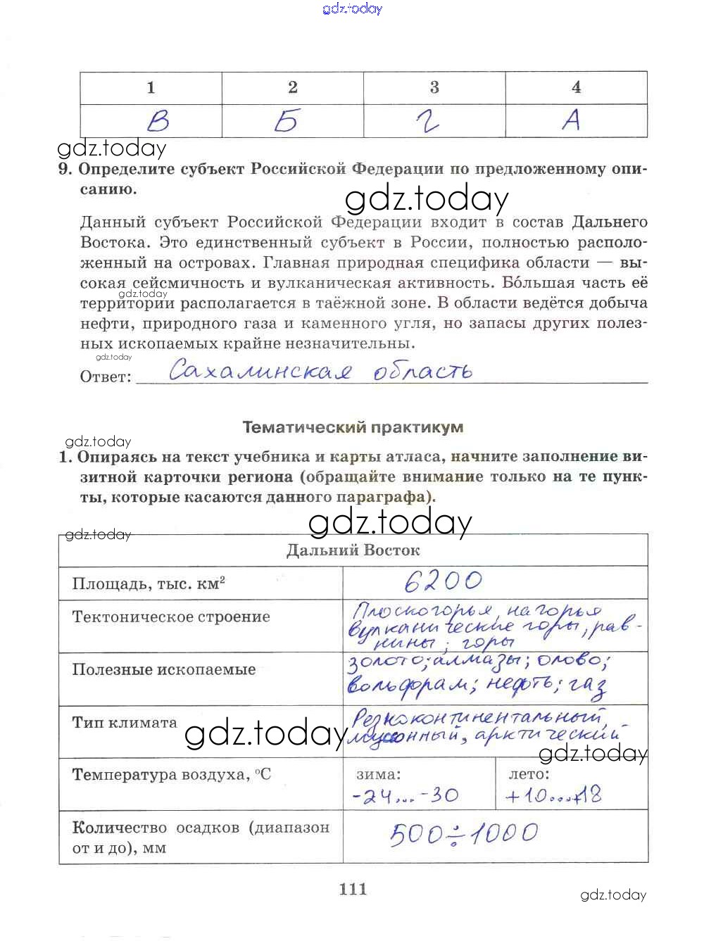На страницах сайта gdz.today вы найдете учебный и вспомогательный материал, направленный на улучшения знаний школьной программы. ГДЗ - онлайн мир знаний Решение к части 2. Страницы 111 Рабочей тетради по Географии для 9 класса Домогацких Русское слово Инновационная школа 2018