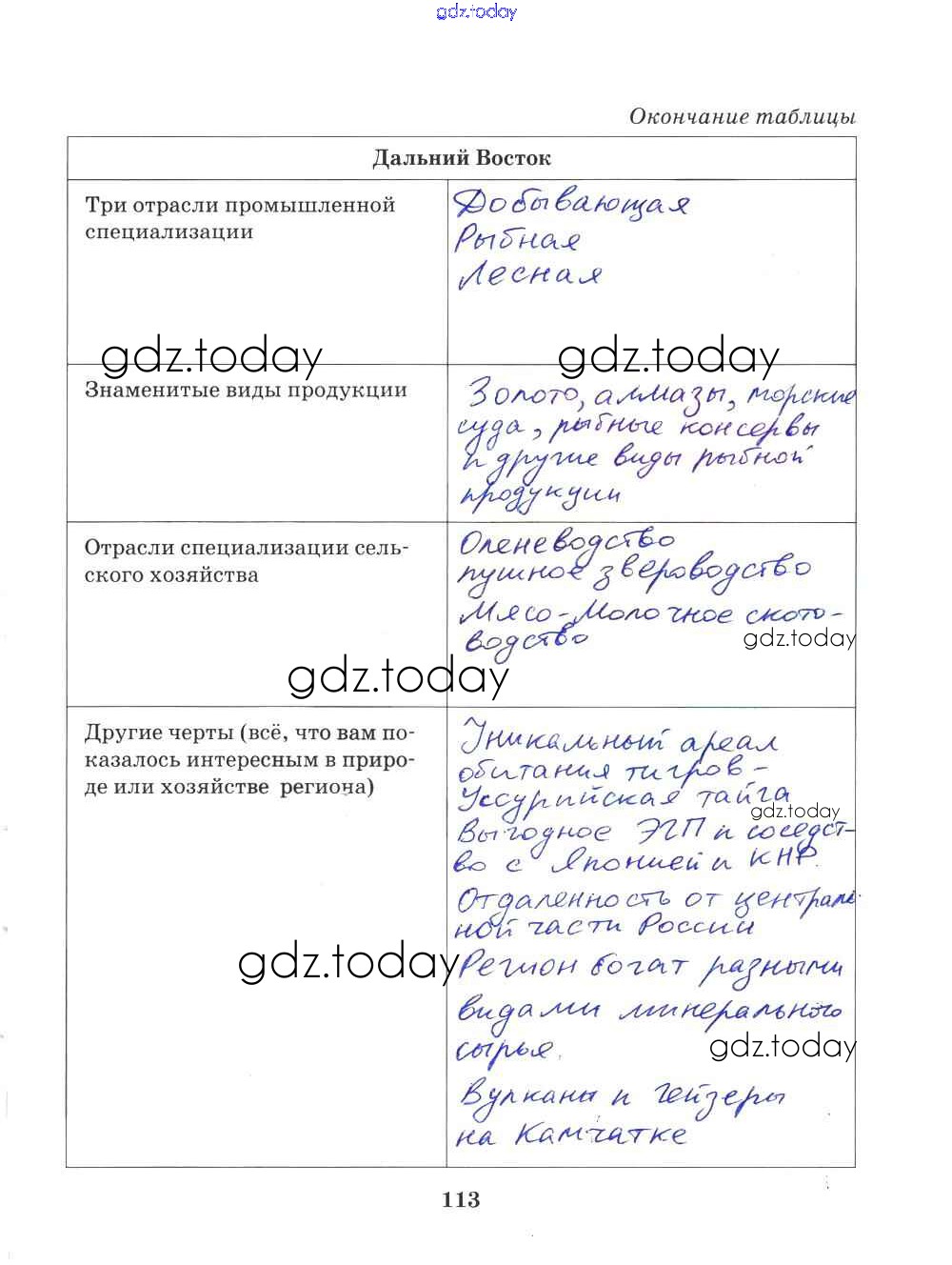 На страницах сайта gdz.today вы найдете учебный и вспомогательный материал, направленный на улучшения знаний школьной программы. ГДЗ - онлайн мир знаний Решение к части 2. Страницы 113 Рабочей тетради по Географии для 9 класса Домогацких Русское слово Инновационная школа 2018
