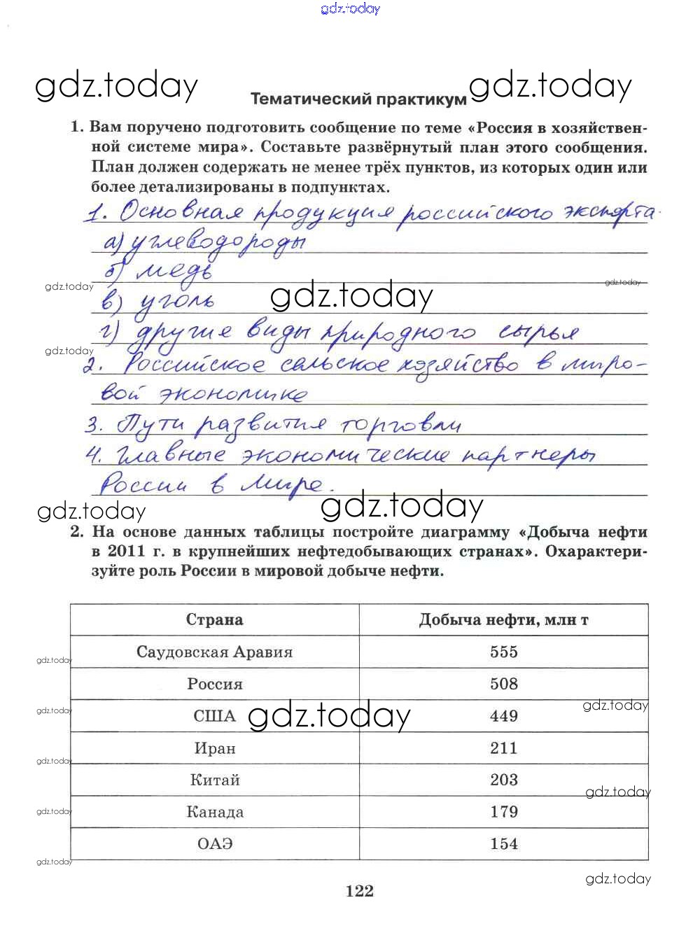 На страницах сайта gdz.today вы найдете учебный и вспомогательный материал, направленный на улучшения знаний школьной программы. ГДЗ - онлайн мир знаний Решение к части 2. Страницы 122 Рабочей тетради по Географии для 9 класса Домогацких Русское слово Инновационная школа 2018