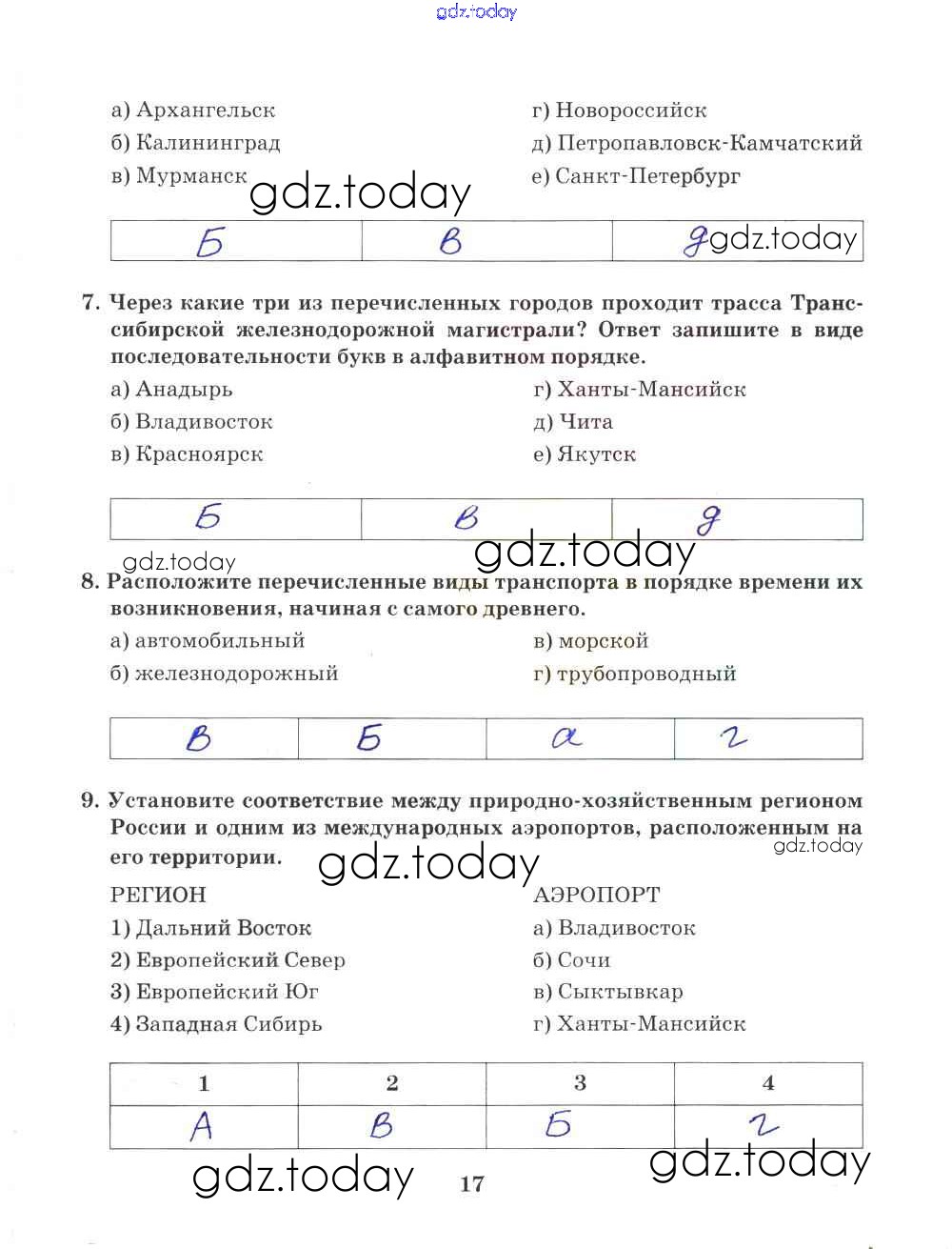 На страницах сайта gdz.today вы найдете учебный и вспомогательный материал, направленный на улучшения знаний школьной программы. ГДЗ - онлайн мир знаний Решение к части 2. Страницы 17 Рабочей тетради по Географии для 9 класса Домогацких Русское слово Инновационная школа 2018
