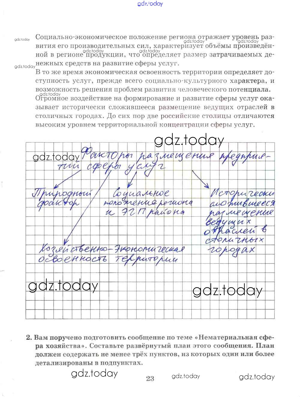 На страницах сайта gdz.today вы найдете учебный и вспомогательный материал, направленный на улучшения знаний школьной программы. ГДЗ - онлайн мир знаний Решение к части 2. Страницы 23 Рабочей тетради по Географии для 9 класса Домогацких Русское слово Инновационная школа 2018