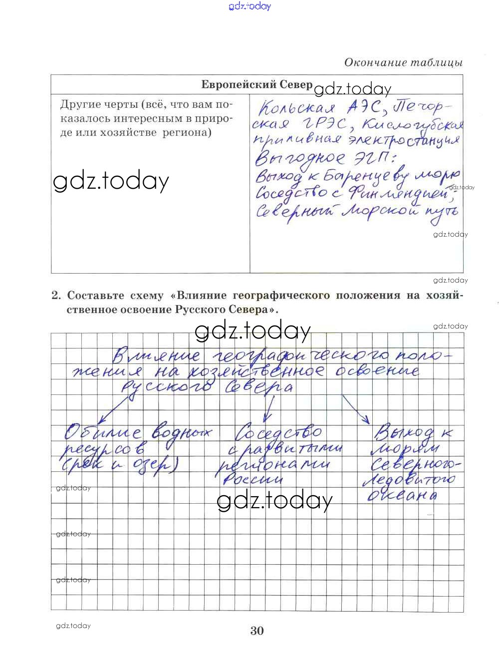 На страницах сайта gdz.today вы найдете учебный и вспомогательный материал, направленный на улучшения знаний школьной программы. ГДЗ - онлайн мир знаний Решение к части 2. Страницы 30 Рабочей тетради по Географии для 9 класса Домогацких Русское слово Инновационная школа 2018