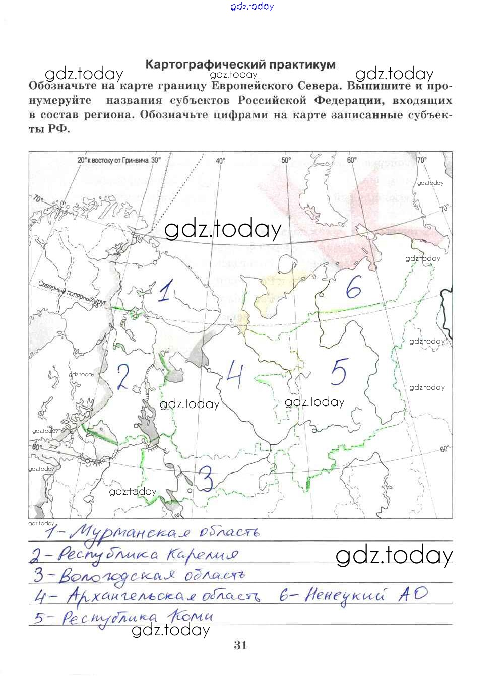 На страницах сайта gdz.today вы найдете учебный и вспомогательный материал, направленный на улучшения знаний школьной программы. ГДЗ - онлайн мир знаний Решение к части 2. Страницы 31 Рабочей тетради по Географии для 9 класса Домогацких Русское слово Инновационная школа 2018