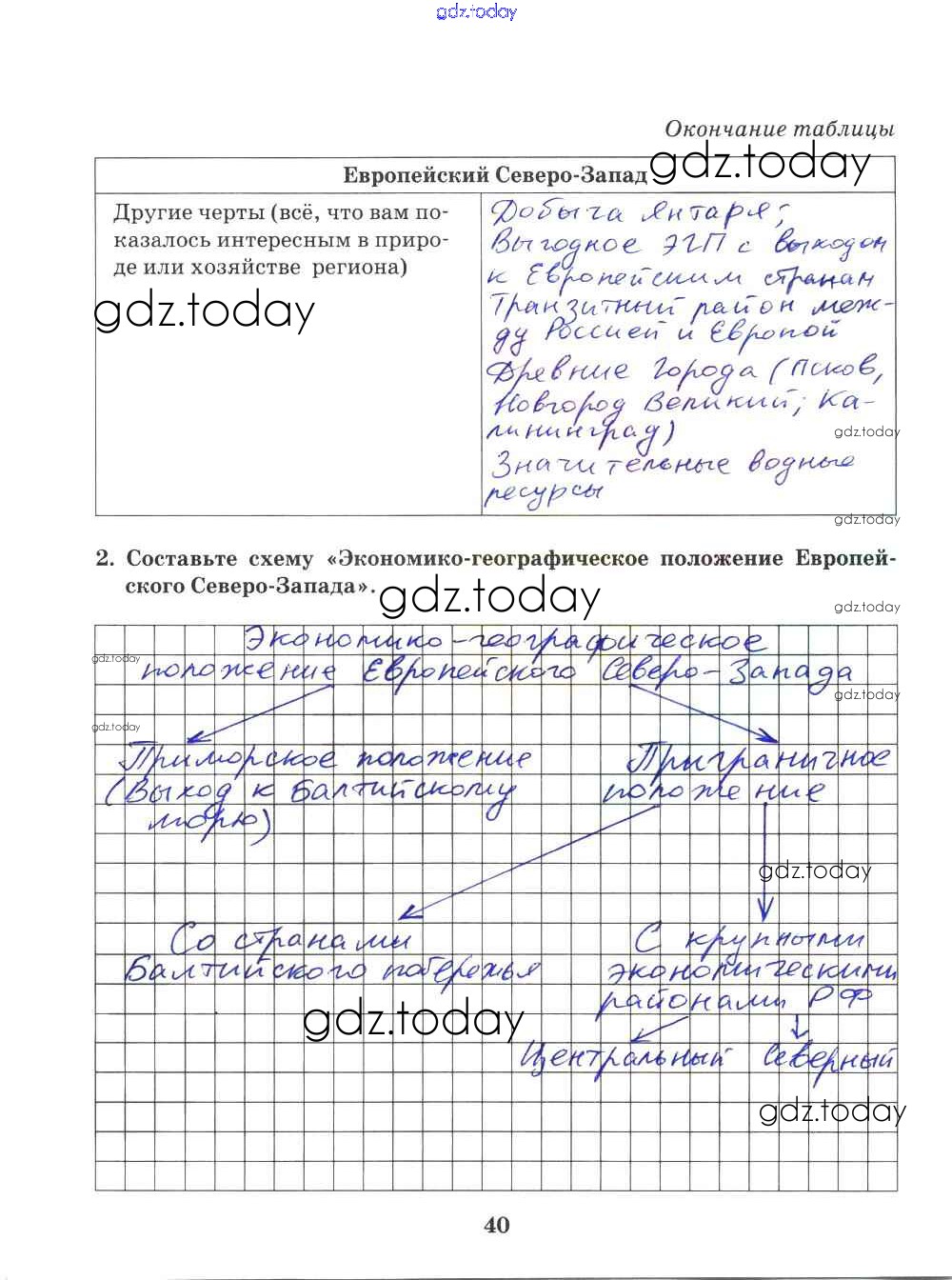 На страницах сайта gdz.today вы найдете учебный и вспомогательный материал, направленный на улучшения знаний школьной программы. ГДЗ - онлайн мир знаний Решение к части 2. Страницы 40 Рабочей тетради по Географии для 9 класса Домогацких Русское слово Инновационная школа 2018