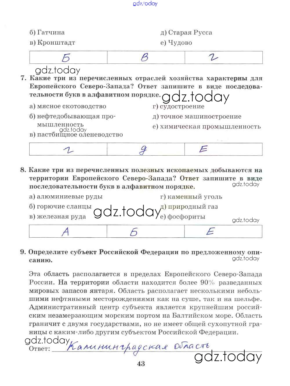 На страницах сайта gdz.today вы найдете учебный и вспомогательный материал, направленный на улучшения знаний школьной программы. ГДЗ - онлайн мир знаний Решение к части 2. Страницы 43 Рабочей тетради по Географии для 9 класса Домогацких Русское слово Инновационная школа 2018