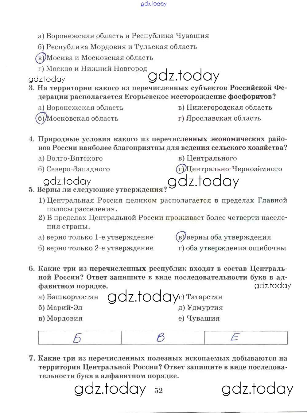 На страницах сайта gdz.today вы найдете учебный и вспомогательный материал, направленный на улучшения знаний школьной программы. ГДЗ - онлайн мир знаний Решение к части 2. Страницы 52 Рабочей тетради по Географии для 9 класса Домогацких Русское слово Инновационная школа 2018