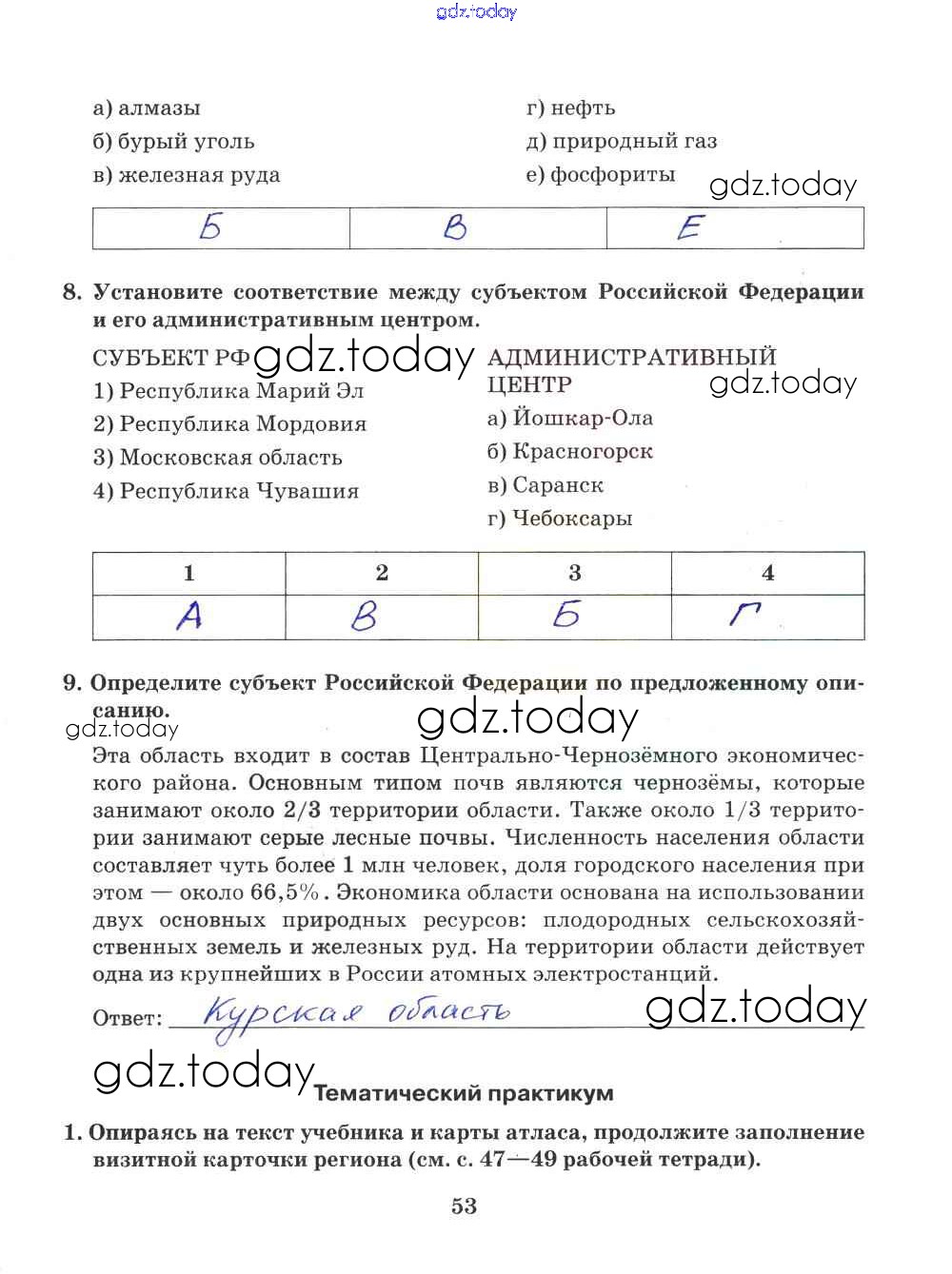 На страницах сайта gdz.today вы найдете учебный и вспомогательный материал, направленный на улучшения знаний школьной программы. ГДЗ - онлайн мир знаний Решение к части 2. Страницы 53 Рабочей тетради по Географии для 9 класса Домогацких Русское слово Инновационная школа 2018