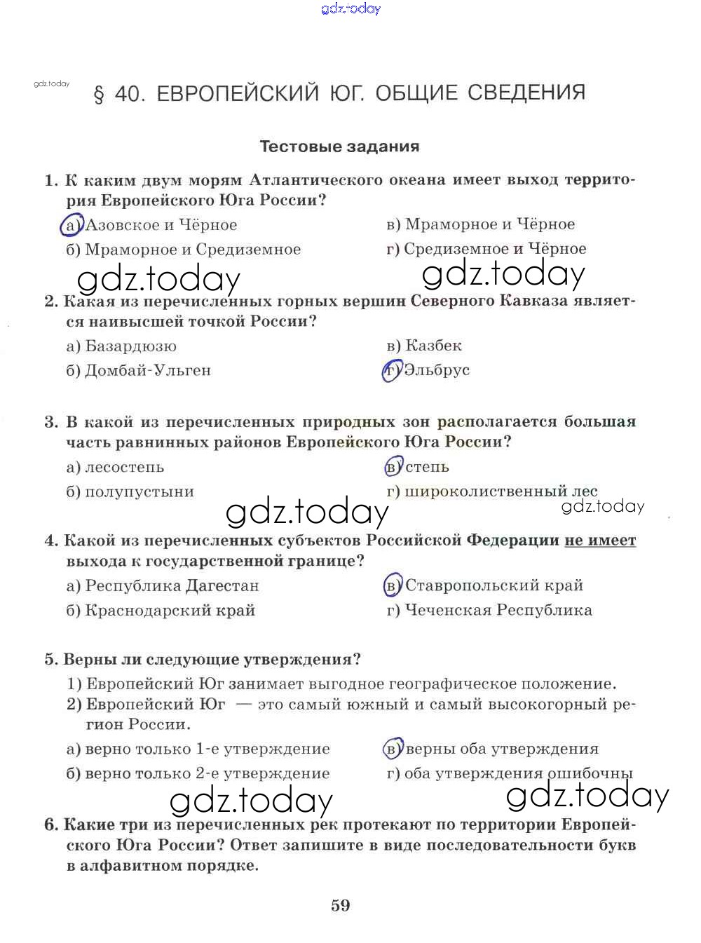 На страницах сайта gdz.today вы найдете учебный и вспомогательный материал, направленный на улучшения знаний школьной программы. ГДЗ - онлайн мир знаний Решение к части 2. Страницы 59 Рабочей тетради по Географии для 9 класса Домогацких Русское слово Инновационная школа 2018