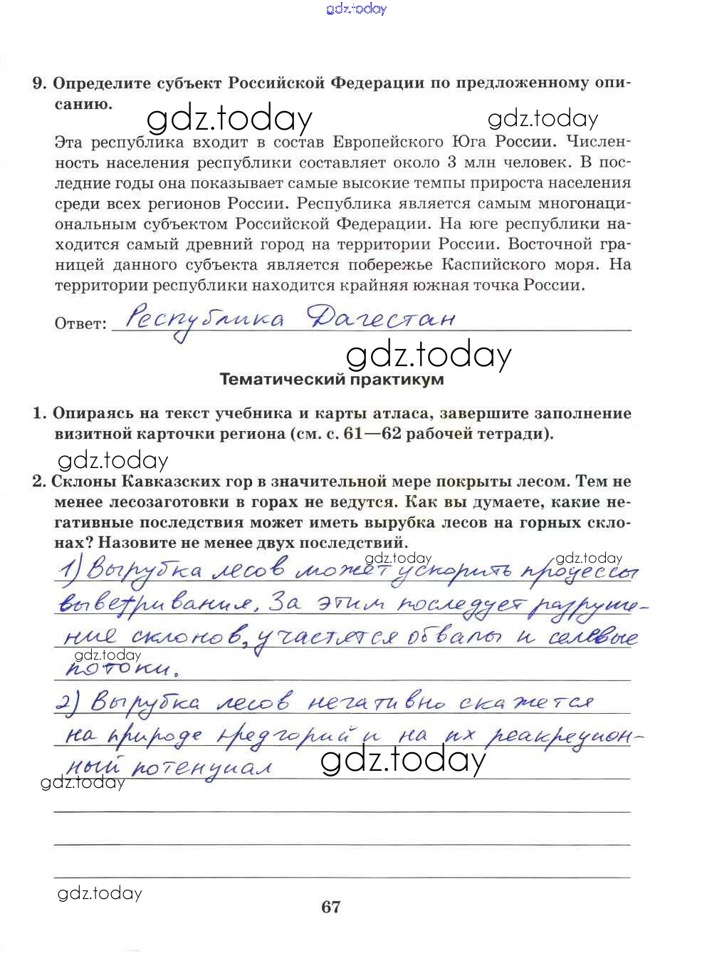На страницах сайта gdz.today вы найдете учебный и вспомогательный материал, направленный на улучшения знаний школьной программы. ГДЗ - онлайн мир знаний Решение к части 2. Страницы 67 Рабочей тетради по Географии для 9 класса Домогацких Русское слово Инновационная школа 2018