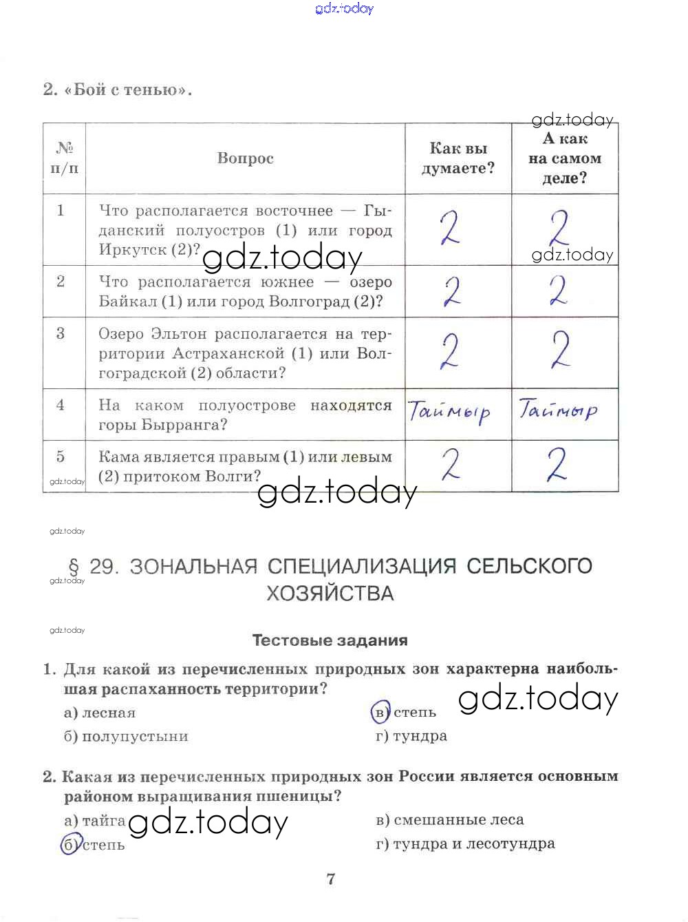 На страницах сайта gdz.today вы найдете учебный и вспомогательный материал, направленный на улучшения знаний школьной программы. ГДЗ - онлайн мир знаний Решение к части 2. Страницы 7 Рабочей тетради по Географии для 9 класса Домогацких Русское слово Инновационная школа 2018