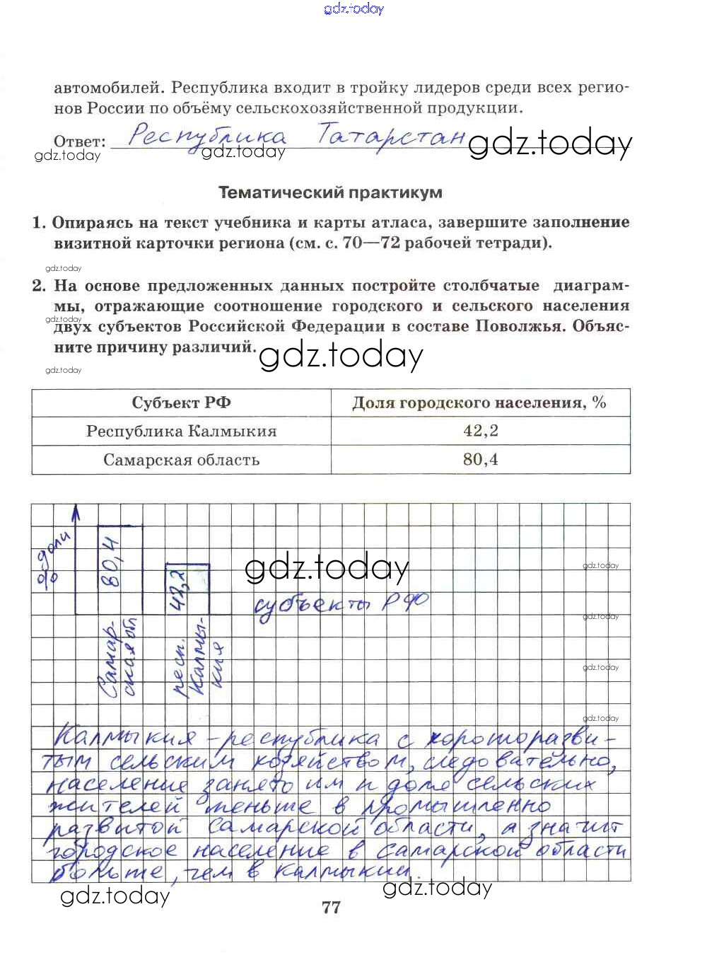 На страницах сайта gdz.today вы найдете учебный и вспомогательный материал, направленный на улучшения знаний школьной программы. ГДЗ - онлайн мир знаний Решение к части 2. Страницы 77 Рабочей тетради по Географии для 9 класса Домогацких Русское слово Инновационная школа 2018