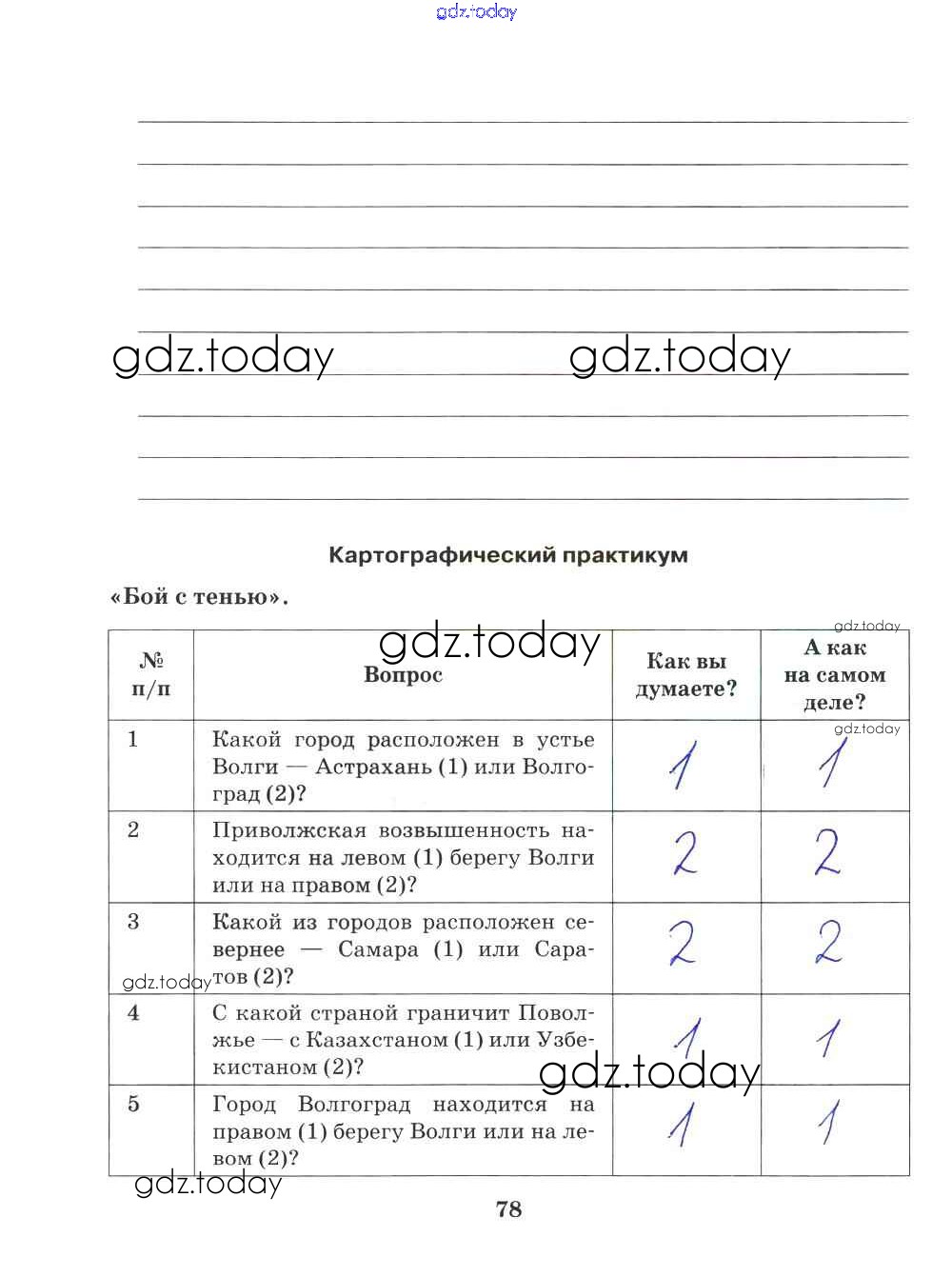 На страницах сайта gdz.today вы найдете учебный и вспомогательный материал, направленный на улучшения знаний школьной программы. ГДЗ - онлайн мир знаний Решение к части 2. Страницы 78 Рабочей тетради по Географии для 9 класса Домогацких Русское слово Инновационная школа 2018