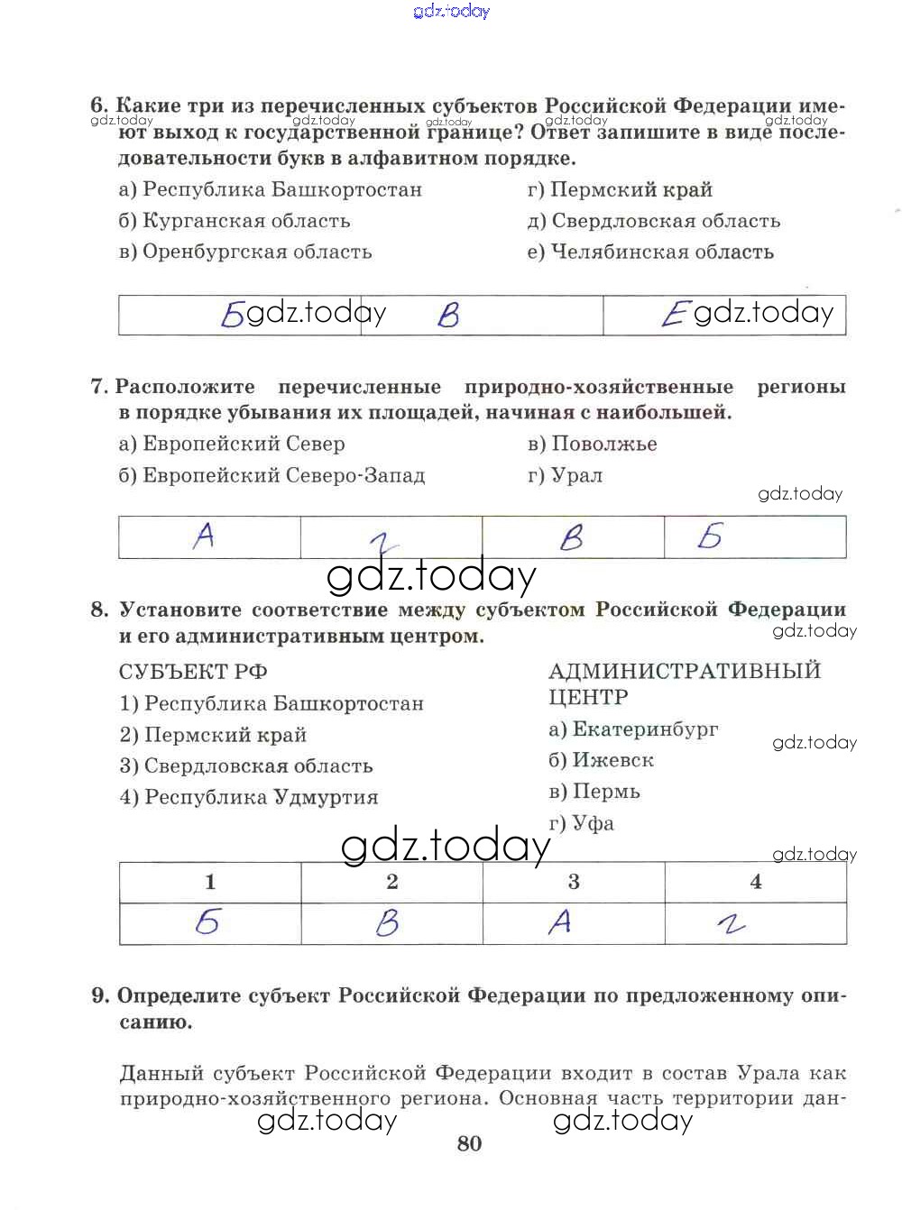 На страницах сайта gdz.today вы найдете учебный и вспомогательный материал, направленный на улучшения знаний школьной программы. ГДЗ - онлайн мир знаний Решение к части 2. Страницы 80 Рабочей тетради по Географии для 9 класса Домогацких Русское слово Инновационная школа 2018