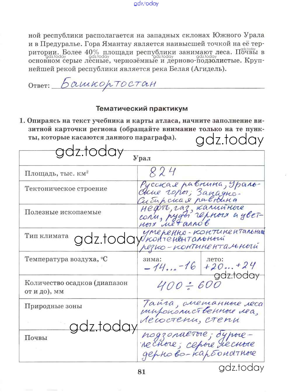 На страницах сайта gdz.today вы найдете учебный и вспомогательный материал, направленный на улучшения знаний школьной программы. ГДЗ - онлайн мир знаний Решение к части 2. Страницы 81 Рабочей тетради по Географии для 9 класса Домогацких Русское слово Инновационная школа 2018