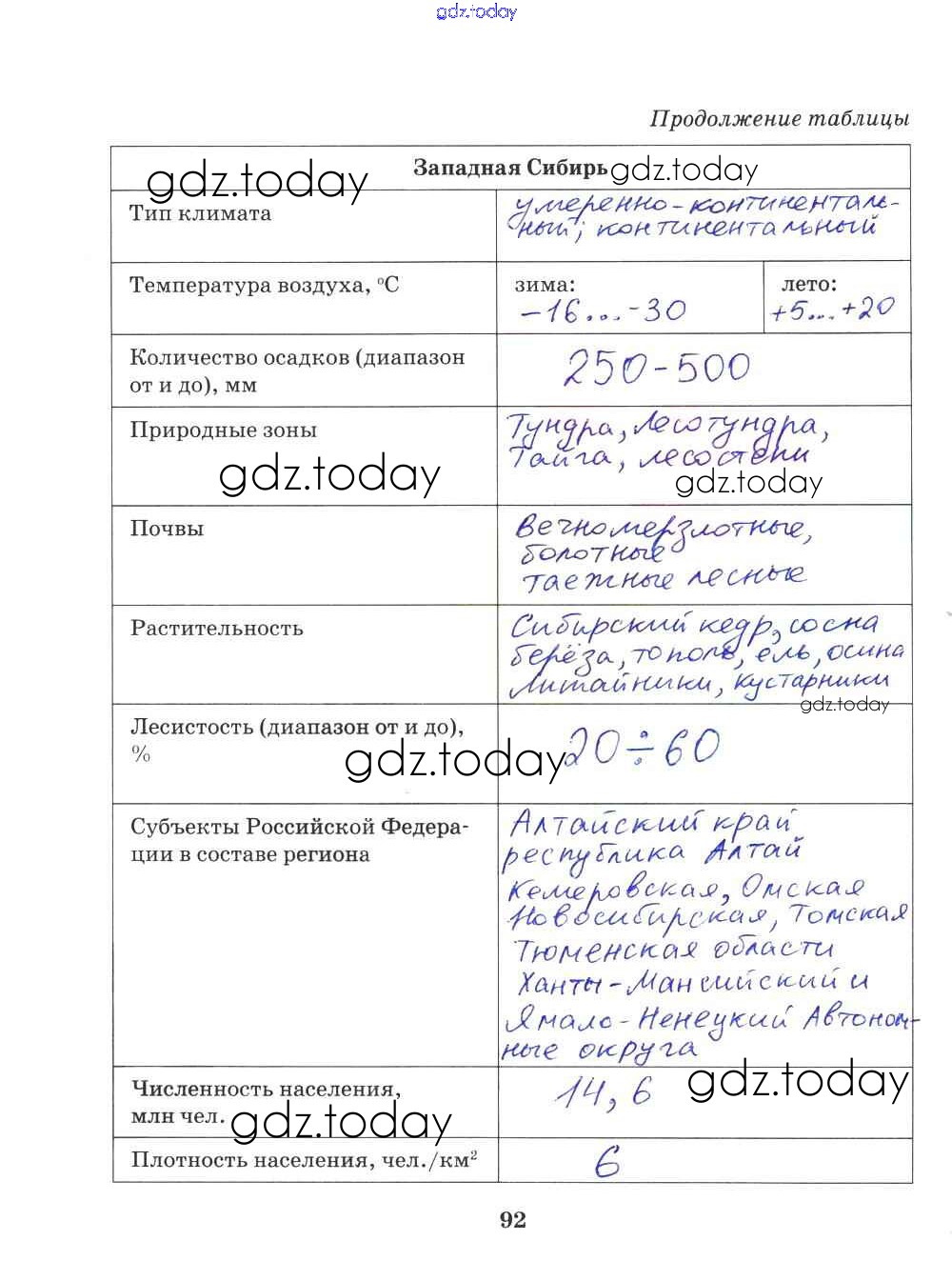 На страницах сайта gdz.today вы найдете учебный и вспомогательный материал, направленный на улучшения знаний школьной программы. ГДЗ - онлайн мир знаний Решение к части 2. Страницы 92 Рабочей тетради по Географии для 9 класса Домогацких Русское слово Инновационная школа 2018