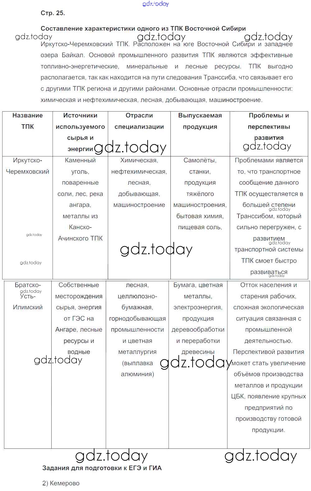 Ответы к Страницы (решение) 25 Рабочей тетради с контурными картами по Географии для 9 класса Сиротин Дрофа 2020