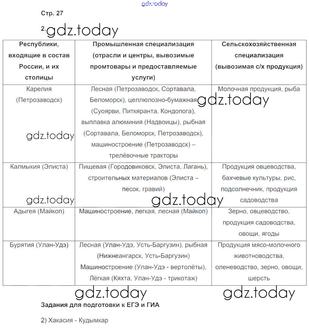 Ответы к Страницы (решение) 27 Рабочей тетради с контурными картами по Географии для 9 класса Сиротин Дрофа 2020